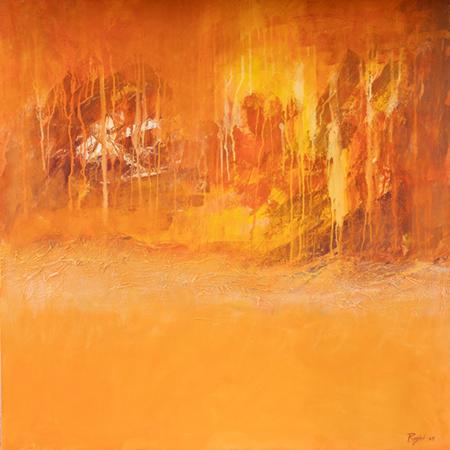 Each canvas in Cascade of Shades feels alive with motion—not in the literal sense, but in how it unfolds across time and mood. A painting seen in morning light might feel entirely different by dusk. These are not static pieces, they evolve with the viewer.